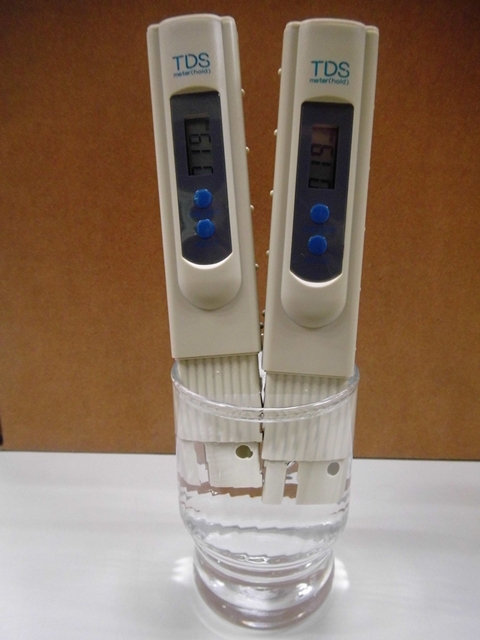 TDS表示水中的導電度鹽鈣等含量,可以TDS筆(水質檢測筆)來側量。