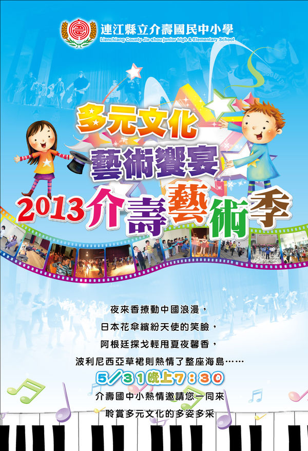 【馬祖日報記者劉秋月�南竿報導】介壽藝術季「多元文化•藝術饗宴」將於今晚7時30分介壽堂閃亮登場,校方與家長會熱情邀約各界鄉親踴躍前往觀賞。