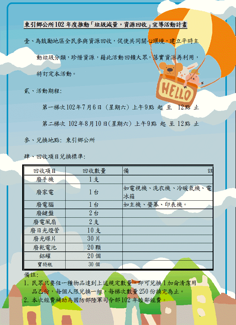 東引鄉公所 垃圾減量,資源回收 宣導計畫