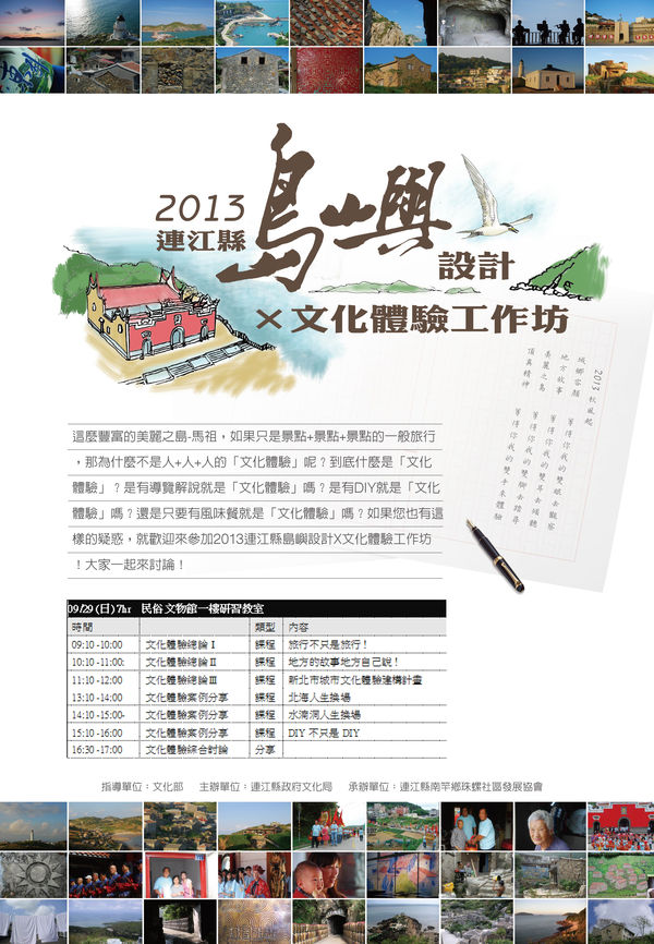 文化體驗工作坊9/29開課 --閱讀人次 : 1232 2013島嶼設計 × 文化體驗工作坊