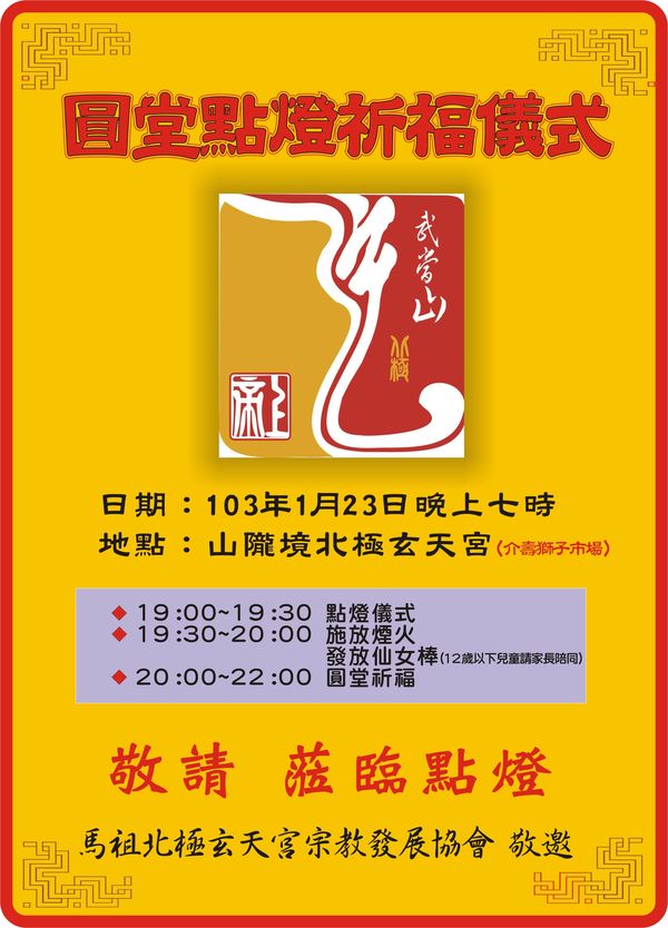 敬邀鄉親●山隴境北極玄天宮圓堂點燈祈福