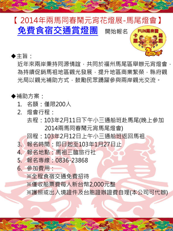 兩馬同春鬧元宵馬尾燈展觀光補助開始報名