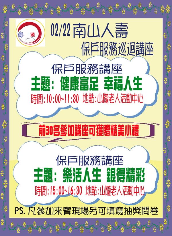 02/22南山人壽-保戶服務巡迴講座 --閱讀人次 : 982
