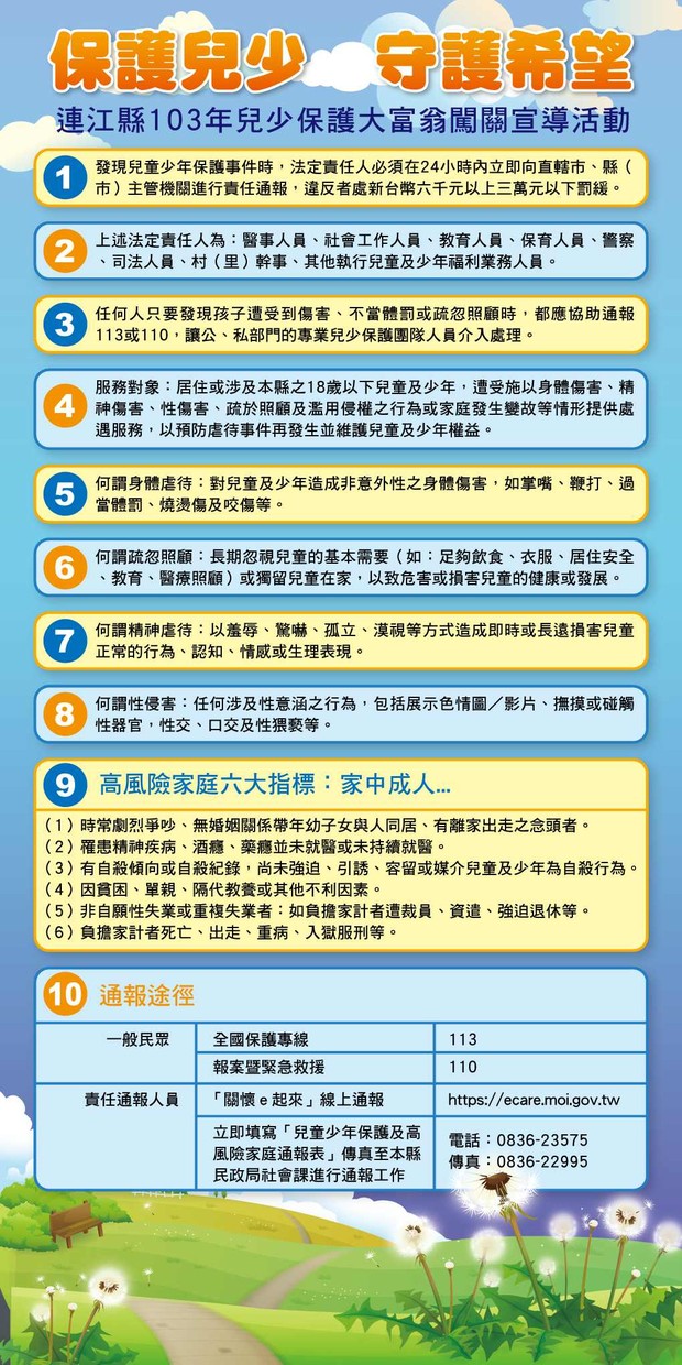 為倡導兒童保護觀念,強化一般民眾對兒童及少年關懷及保護認知,