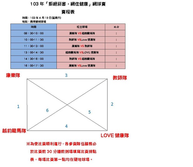 103年「拒絕菸害、網住健康」賽程表