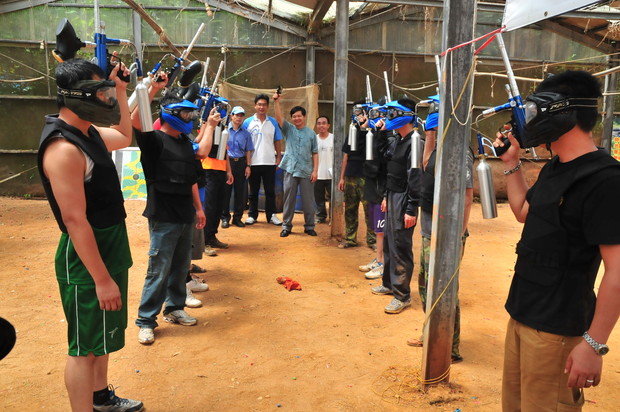 1. 團體組:招收16隊(額滿為止)每隊5名選手,每人100發漆彈。