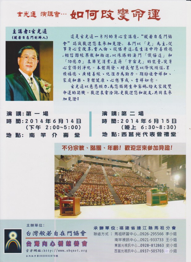 會中 玄光通開示人的生命密碼外亦幫忙與會縣民拔病苦.