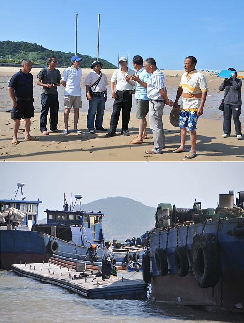 為進一步了解浮排的實用性及現況,工務局劉潤南局長昨天下午利用退潮時間,會同北竿多位漁民現勘浮排位置並確認乾潮底水深,對漁民的疑慮也要求顧問公司及包商儘速提出可行方案因應;另外漁民也建議與岸上的連絡道要確實銜接妥當,再者也希望政府能考慮將馬鼻灣南面缺口做適當的遮蔽,可保全部澳口風平浪靜,成為北竿唯一可完全避風的澳口。
