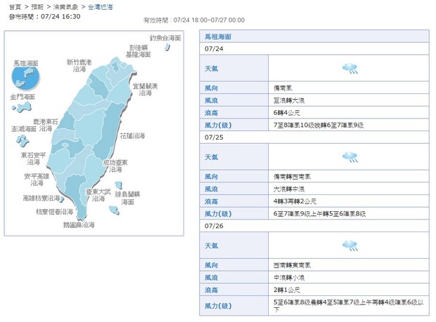 明日海象預報不佳,陣風達九級超過標準(八級),