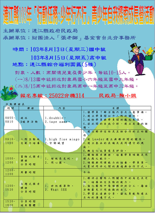 承辦單位:財團法人「張老師」基金會台北分事務所