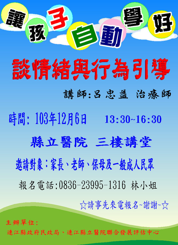 讓孩子自動學好--談情緒與行為引導 --閱讀人次 : 657 讓孩子自動學好--談情緒與行為引導 尚有名額