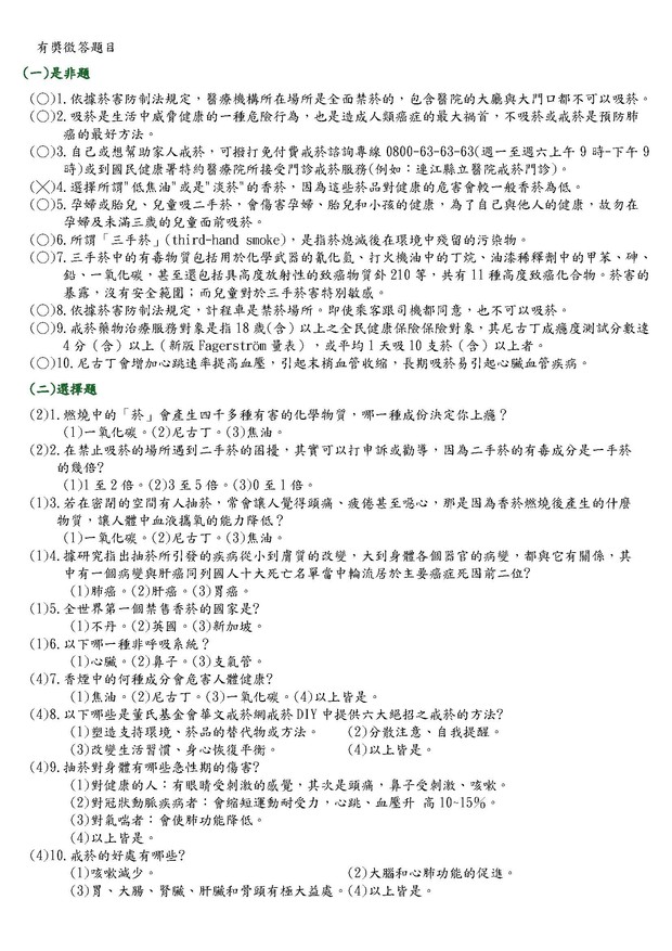 六、戒菸常識Q&A有獎徵答活動中獎名單如附檔: