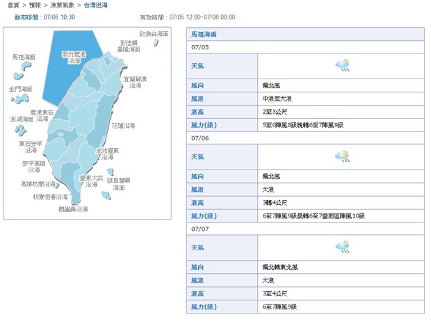 因颱風外圍環流影響,海象預報天氣不佳