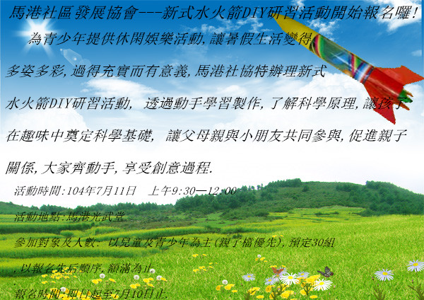 馬港社協---新式水火箭活動開始報名囉!