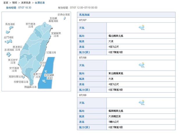 根據中央氣象局海象預報