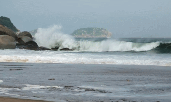 颱風還未到 板里沙灘就揪起了滔天巨浪(邱祖珩攝)