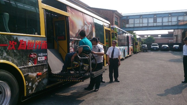 有愛無礙,大客車無障礙設施操作觀摩花絮 --閱讀人次 : 756 臺北市區監理所為讓客運駕駛熟悉大客車無障礙設備之操作,滿足身心障礙者乘車需求,日前結合客運業者在大都會汽車客運公司內湖調度場辦理「大客車無障礙設備操作觀摩會」,希望能提供身心障礙者更佳的無障礙運輸服務。