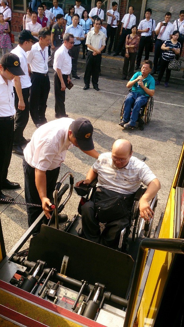 當天觀摩會邀請基隆、臺北、新北、桃園、新竹等北部地區相關身障團體、專家學者、縣市政府、客運公司及監理機關等單位與會,其中更有身障人士現身說法,實地參與現場模擬身心障礙者及行動不便者以輪椅上、下車時的狀況,過程圓滿順利。