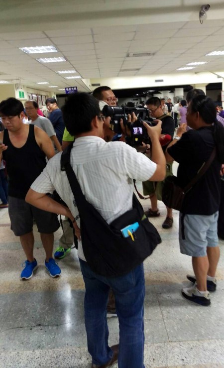 東引鄉民代表林瑞璇攝於基隆西二碼頭二樓候船室,林瑞璇表示有兩家電視台記者趕到,是三立和中天。