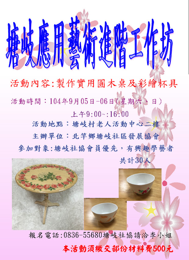 9/05~06舉辦塘岐社區應用藝術進階工作坊