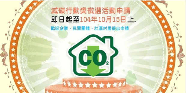 為持續推動全民減碳風氣,於本(104)年度起「節能減碳行動標章」更名為「減碳行動獎」徵選活動,期望透過選拔並表揚減碳行動優良單位,以凝聚我國低碳生活風氣,達到宣傳民眾共同落實溫室氣體減量之目的。