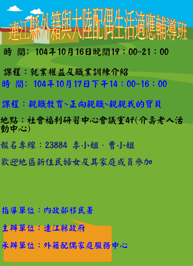 大陸與外籍配偶生活適應輔導班~歡迎報名