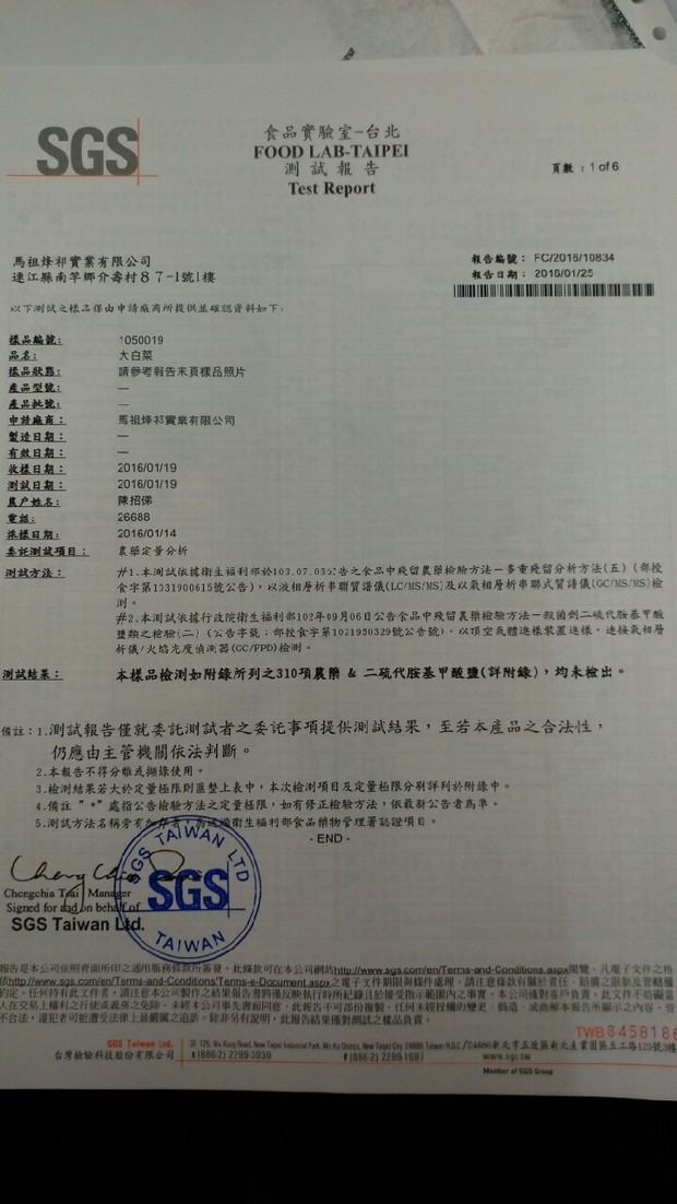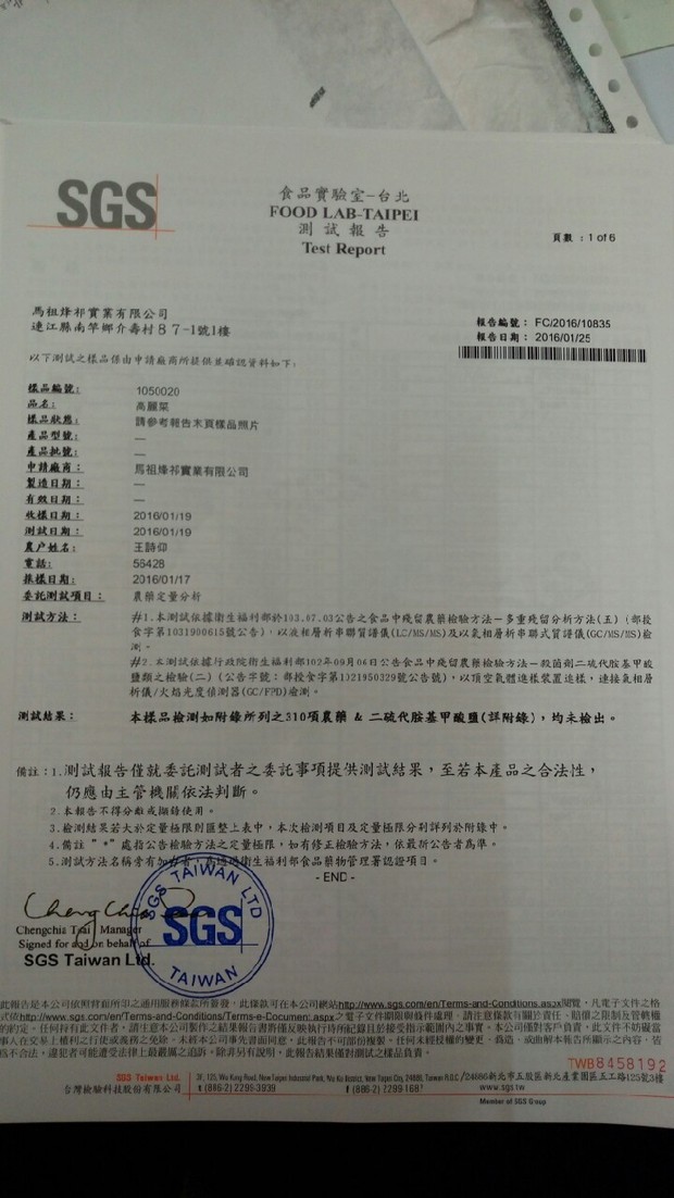 採收前,皆經SGS檢驗合格