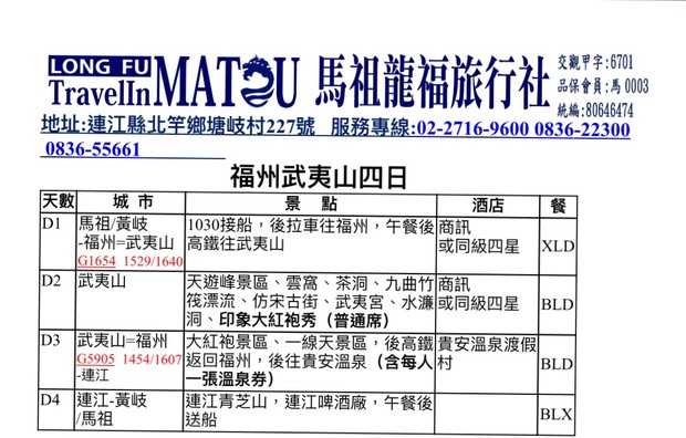 北竿婦女分會預定於5月9日至5月12日舉辦4天3夜母親節旅遊活動,65歲以上者需家人陪同。台胞證,金馬證,護照等證件需自行辦理。報名日期即日起至4月20日止。有意參加者聯絡袁小姐0933095034