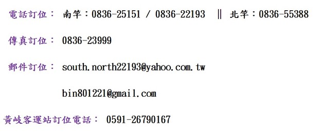 南 北 海 運 歡 迎 您 的 搭 乘 !