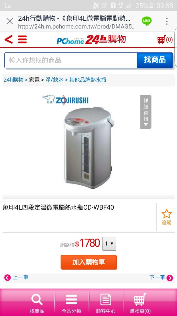 象印4L四段定溫微電腦熱水瓶CD-WBF40 .