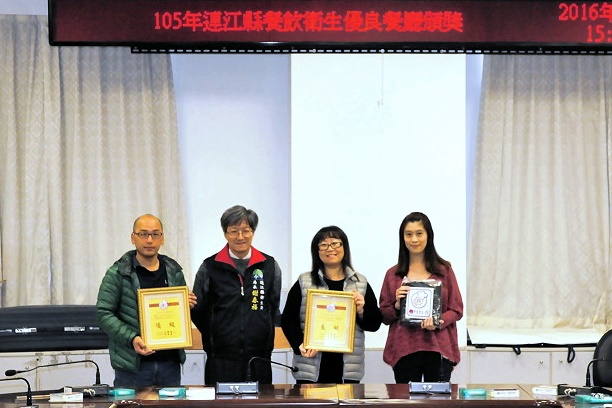 【記者曹重偉報導】為提升地區餐飲衛生品質,連江縣衛生局今年續辦餐飲店衛生評核業務;結果分別由馬祖藍灣景觀餐廳獲得「優級」,拉亞漢堡馬祖南竿店獲得「良級」;9日下午由局長謝春福頒發獎狀表揚及特別致贈廚師圍裙等作為鼓勵;謝春福表示,近兩年隨著地區旅遊發展及生活水準提升,餐飲業者也該與時俱進,主動提供更整潔舒適的用餐環境,衛生局也會持續輔導及改善。