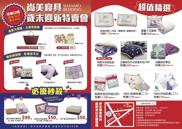花蓮尚美寢具歲末迎新特賣會開始囉~~~