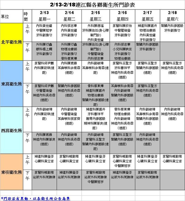 0213-0218各鄉衛生所門診表