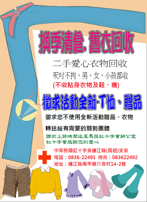 馬祖紅十字會募集二手愛心衣物