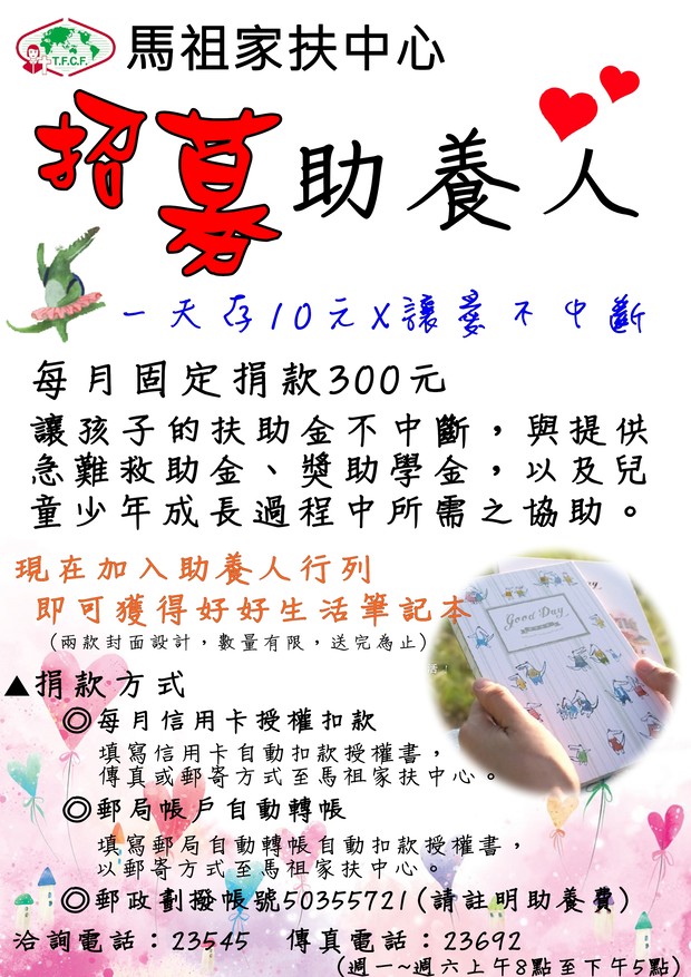 馬祖家扶FB粉絲專業:https://www.facebook.com/tfcf35/