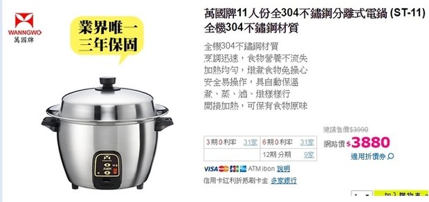 萬國牌11人份分離式不AHR鏽鋼電子鍋 附多件組