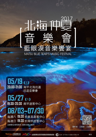 另外,藍眼淚音樂饗宴巡迴活動27日晚間7時30分南竿遊客中心演出,6月3日至7月30日每週六晚間7時30分莒光遊客中心、每週日晚間7時30分南竿遊客中心表演,帶給觀眾豐富的藝文體驗。