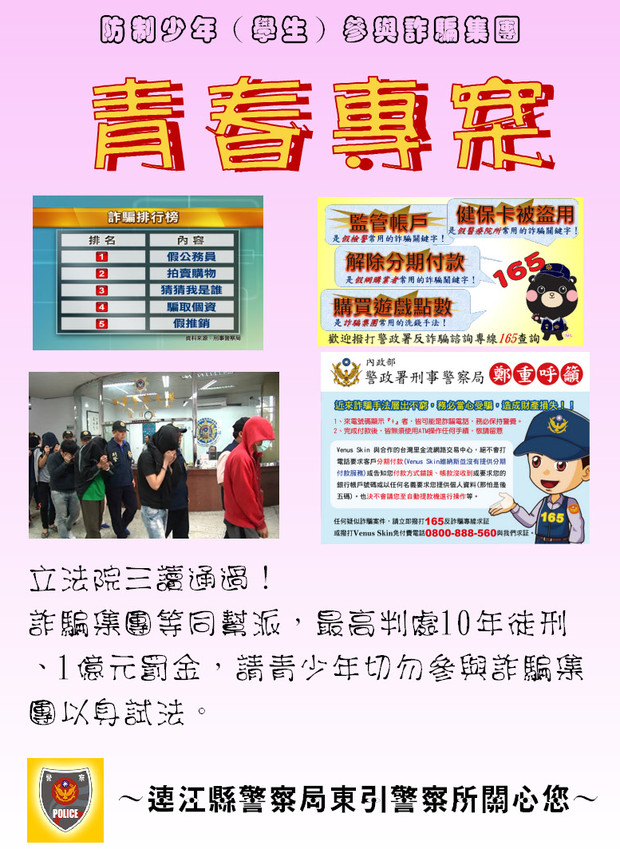 青春專案-防制少年(學生)參與詐騙集團宣導