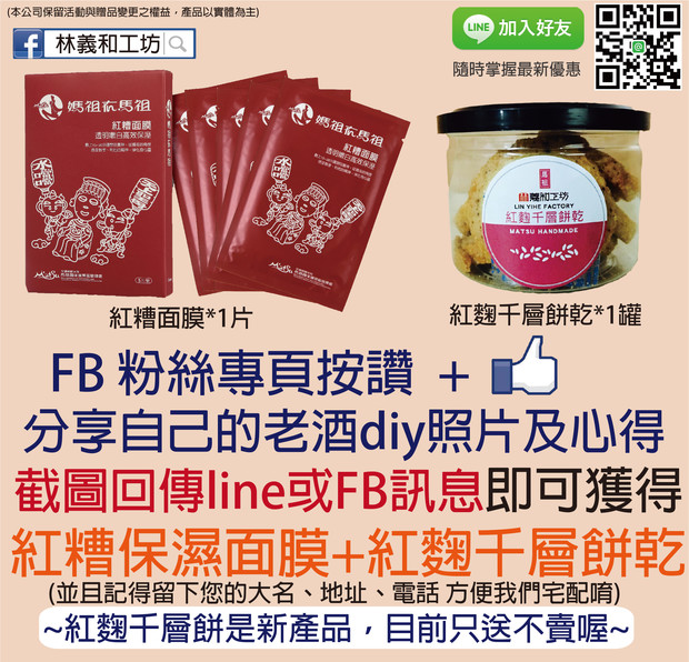 林義和工坊FB粉絲專頁按讚 + 分享自己的老酒diy照片心得
