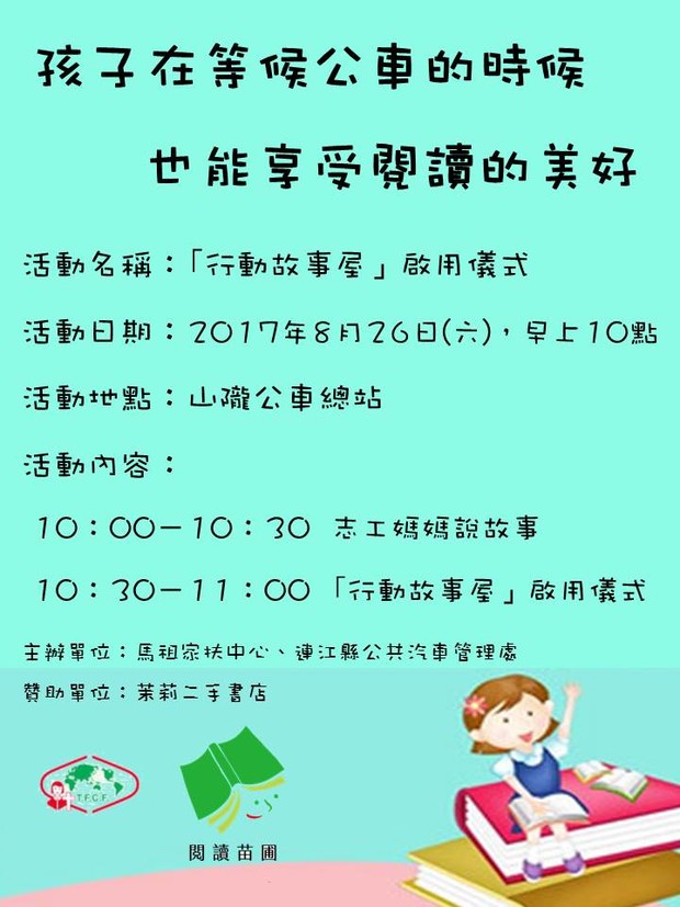 讓孩子在等候公車時,也能享受閱讀的美好 --閱讀人次 : 878 馬祖家扶與連江縣公共汽車管理處合作-行動故事屋