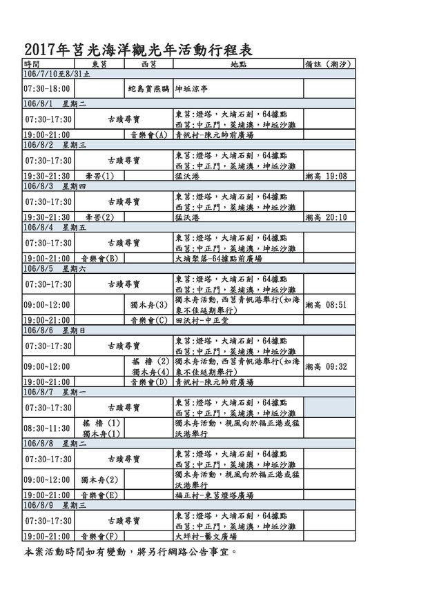 2017海洋觀光年活動 7/29-8/6 延期從8/1 - 8/9