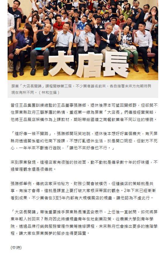 前王品集團訓練總監講授餐飲服務品質衛生 --閱讀人次 : 1201 從知名的頂級豪華王品台塑牛排、和風創作料理陶板屋、都會時尚風格的TASTY、原汁原味的原燒…等多家知名的高級連鎖餐廳,王品餐飲集團一直以來都是高級餐飲連鎖店的指標。本局在特殊的機緣下邀請到曾任王品集團教育訓練總監,現任屏東縣政府大店長課程指導老師張勝鄉先生講授『顧客感動方程式與餐飲衛生』,帶領地區食品業者一窺服務的容貌 並提升餐飲衛生品質。