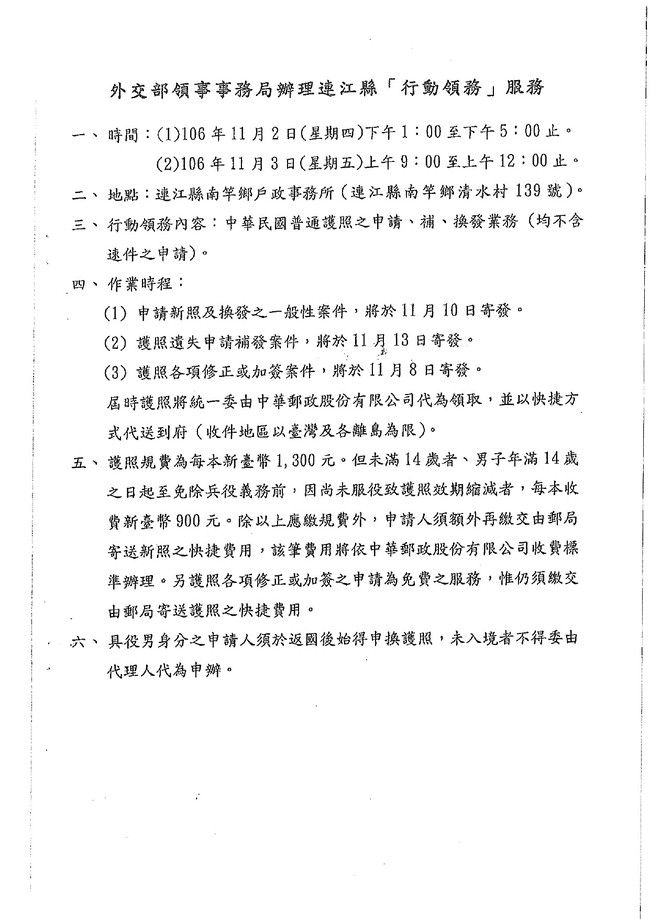 外交部領務局辦理連江縣行動領事服務