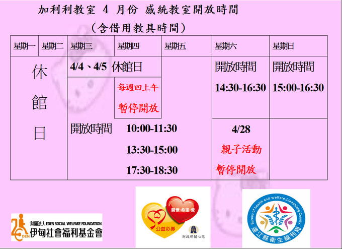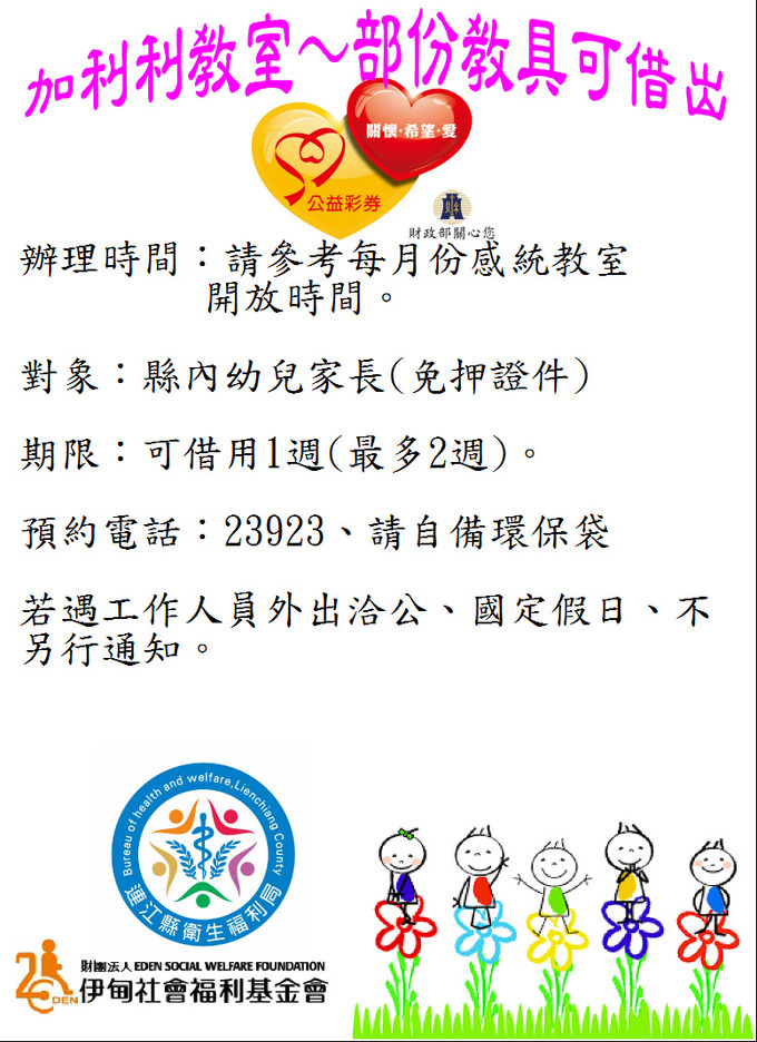 借用教具時間 請參考 —> 感統教室開放時間