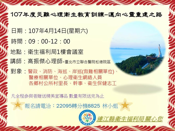 邁向心靈重建之路-災難心理衛教訓練 --閱讀人次 : 613
