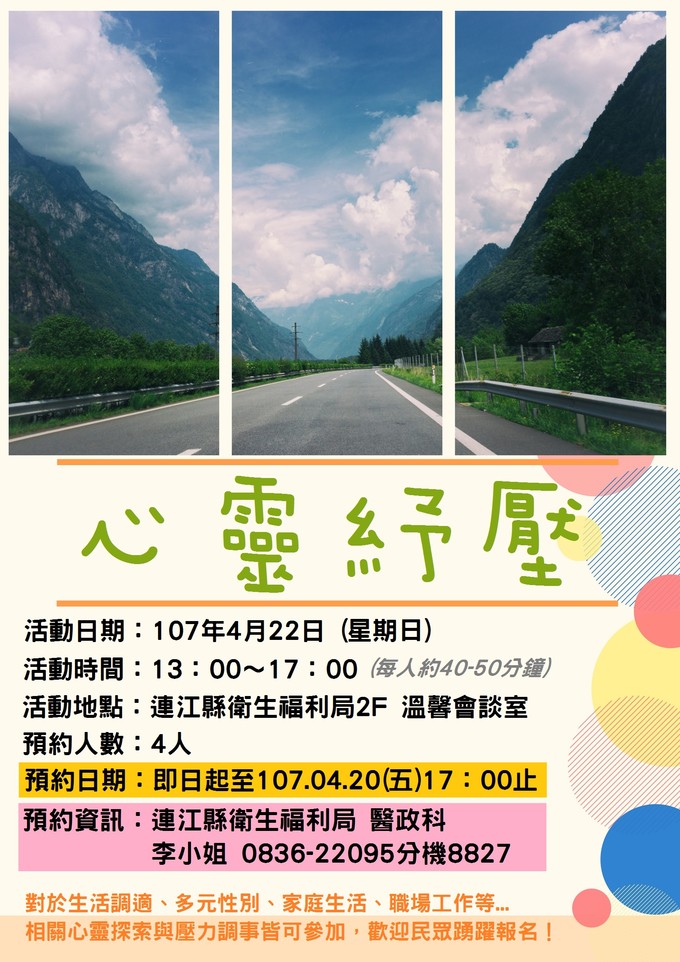 ●預約聯絡人:連江縣衛生福利局-心理健康網 李小姐 0836-22095轉8827