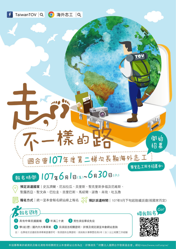 107年第二梯次長期海外志工暨專案志工招募中