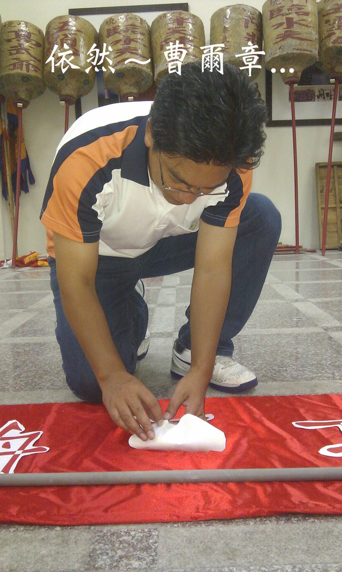 曹爾章依然是那個嘴巴不怎麼甜的大個兒,就如我偷偷從他臉書擷取下的這張低頭默默製作活動用的布條一樣,悶頭做事是他的特質。
