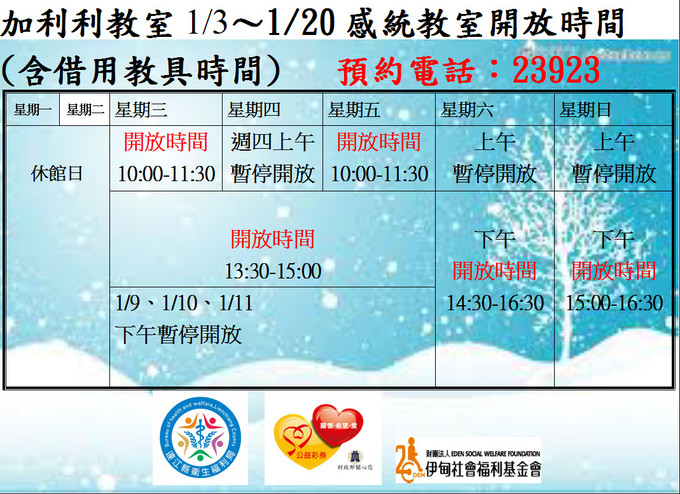 1月感統教室(加利利教室)-開放時間