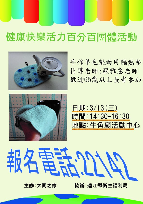 3/13(三) 健康快樂百分百,手作羊毛氈